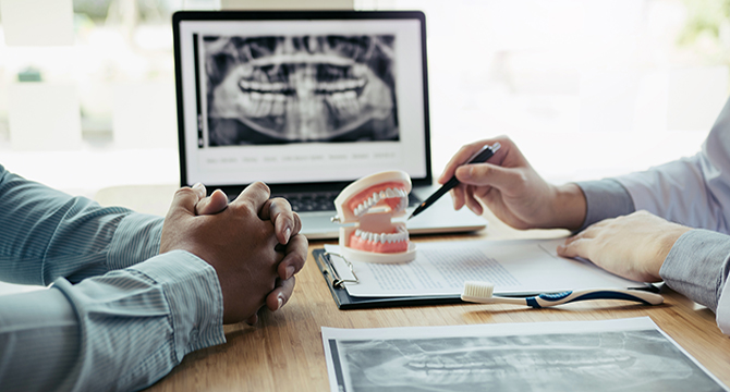 Overjet’s artificial intelligence technology transforms traditional black-and-white X-rays by adding a layer of data that instantly outlines decay (cavities) and measures bone loss. This makes it easy for you to see your results alongside your dentist. It’s like getting a second opinion delivered instantly. With Overjet’s analysis and easy-to-read presentation, you will have the information you need to make an informed decision about your oral health. Together, we’ll review your findings and discuss the best steps to take to achieve your goals.